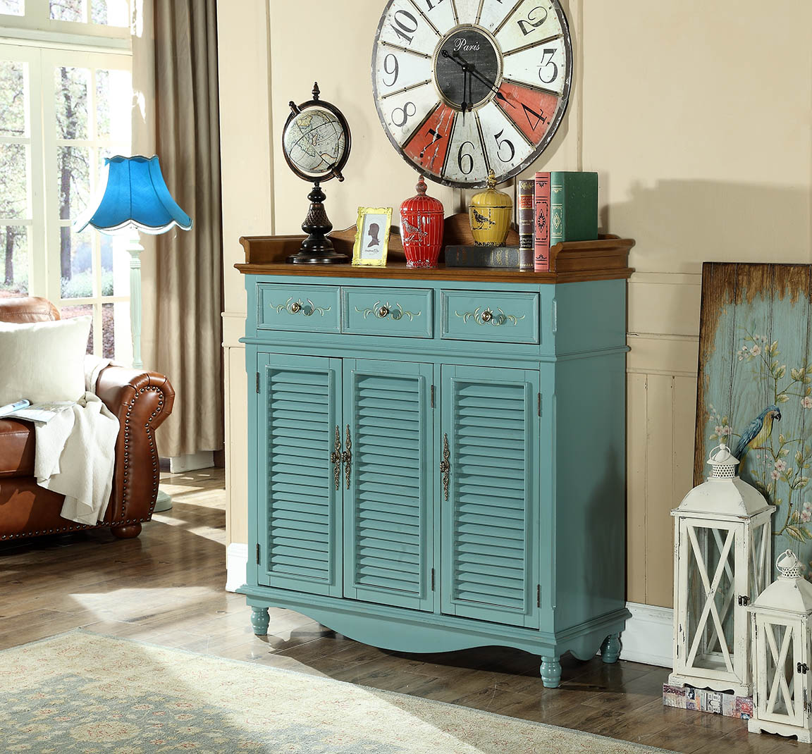Echt houten dressoirs, blauw dressoir, stijlvolle inrichting, hoogwaardige meubels, woonkamermeubels