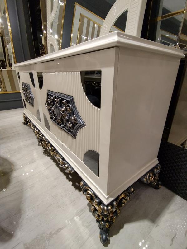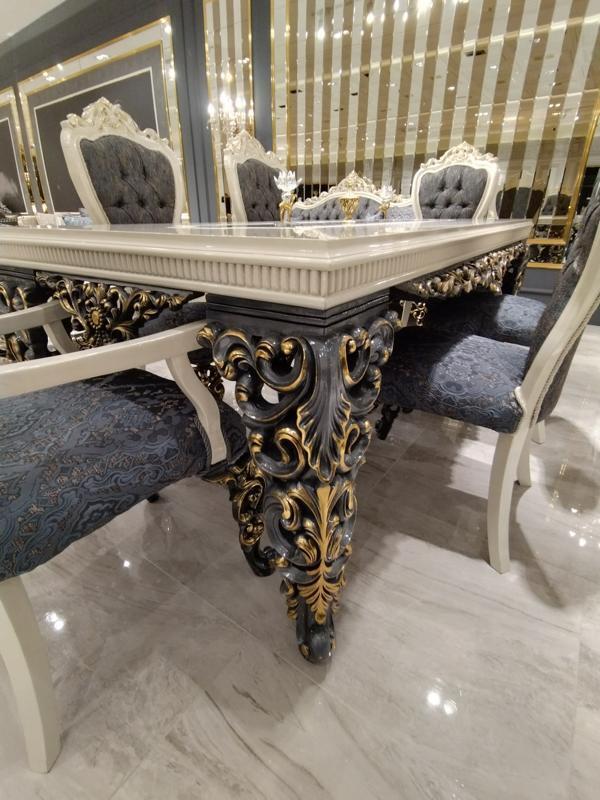 Glamoureus eetkamer set Eettafel + 6x stoelen + dressoir met spiegel 8-delig is een prachtige toevoeging aan uw eetkamer die elegantie en stijl uitstraalt. De set bestaat uit een ruime eettafel met afmetingen van ongeveer 210 x 83 x 104 cm, samen met zes comfortabele stoelen van ongeveer 55 x 55 x 90 cm. Daarnaast omvat de set een dressoir met spiegel, met een indrukwekkende grootte van ongeveer 210 x 55 x 94 cm. Alle stukken zijn vervaardigd van hoogwaardig hout en worden geleverd in de kleur zoals afgebeeld, wat een verfijnde uitstraling geeft aan uw interieur.
