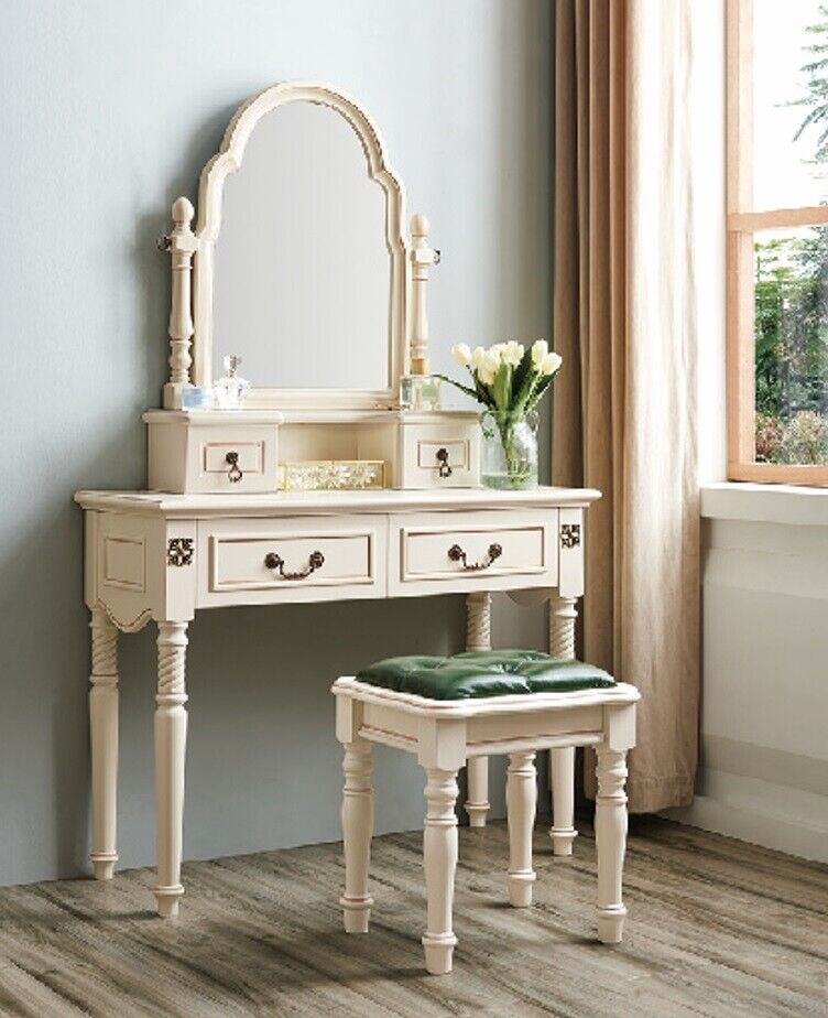 Met deze kaptafel set creëer je een stijlvolle en functionele plek om je klaar te maken voor de dag. De ruime tafel biedt voldoende ruimte voor al je make-up en beauty essentials, terwijl de spiegel zorgt voor goed zicht tijdens het aanbrengen. De comfortabele hocker maakt het gemakkelijk om plaats te nemen en jezelf klaar te maken in alle comfort. Of je nu het perfecte plekje wilt creëren om jezelf op te maken voor een avondje uit of gewoon een speciale ruimte wilt hebben om jezelf te verzorgen, deze kaptafel set biedt de perfecte combinatie van schoonheid en functionaliteit.