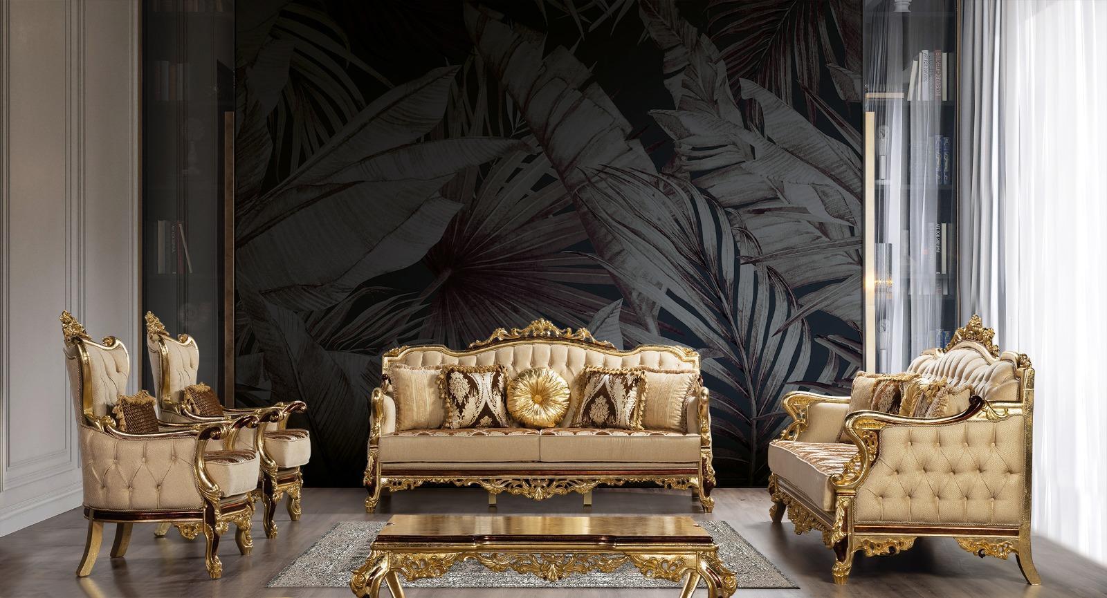 Gouden banken, rococo meubels, luxe wonen, elegant interieur, bankstel.