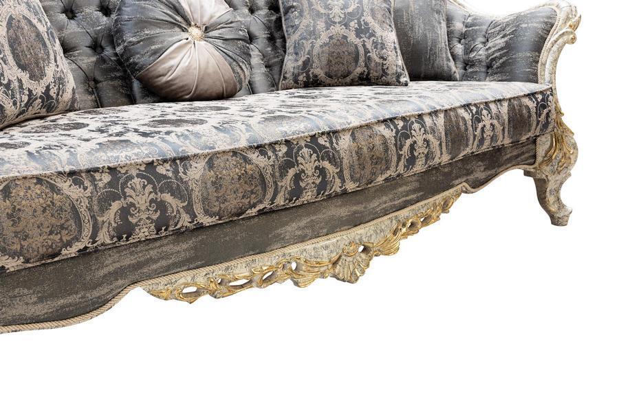 Barokbank 3-zits Grijs Woonkamer Klassiek Design Bank Stof