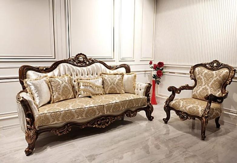 Chesterfield Barok driezits meubel bank sofa stof goud bankstel