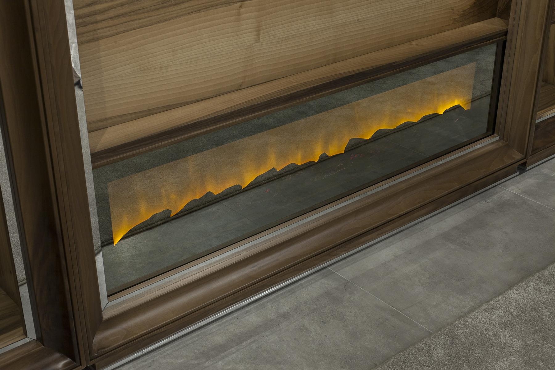 Luxe woonkamerwand, 448 cm, met houten haard