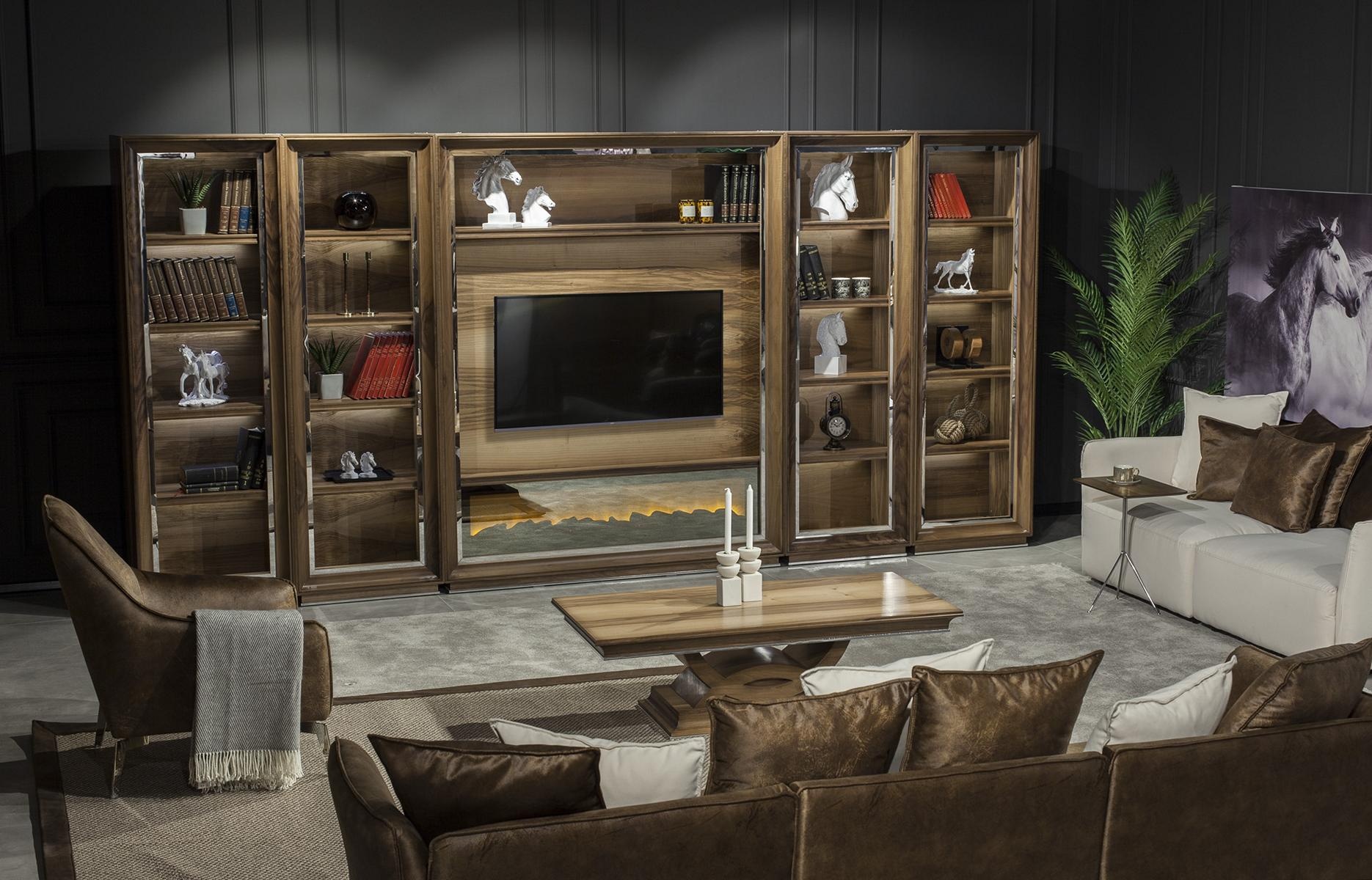 De Luxe woonkamerwand, met een indrukwekkende breedte van 448 cm, is een meesterwerk dat perfectie en elegantie belichaamt. Deze wand, vervaardigd uit hoogwaardige materialen, omvat een verfijnde houten haard die warmte en sfeer toevoegt aan elke ruimte. De diepe, bruine tint straalt luxe uit en vormt een harmonieus geheel met diverse interieurstijlen. Dit meubelstuk is niet slechts een aanvulling op uw woning; het is een statement van een exclusieve levensstijl. Met meer dan 20 jaar ervaring in het creëren van luxe meubels, biedt dit ontwerp een ongeëvenaarde combinatie van functionaliteit en esthetiek, waardoor het een essentiële keuze is voor wie waardering heeft voor de fijnere dingen in het leven.