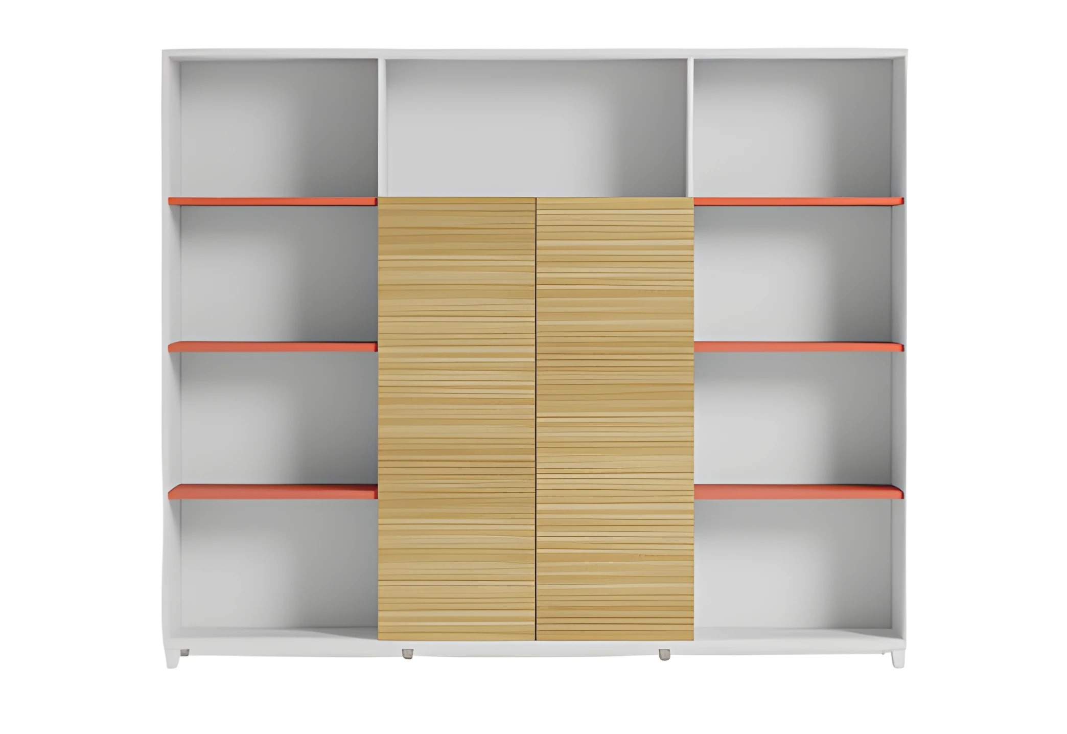 Elegante tafellamp met houten planken en oranje accenten | xlmeubilair.nl