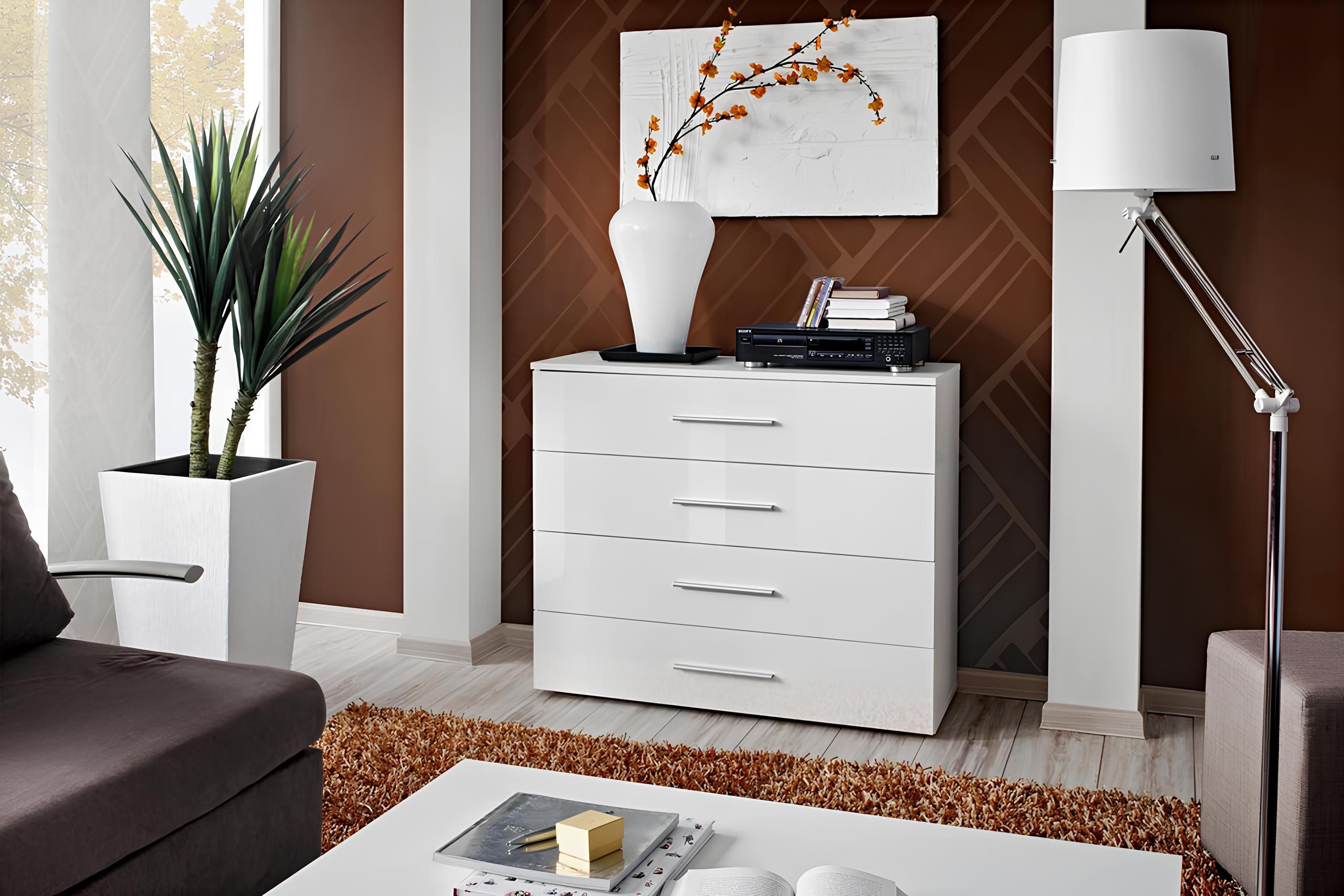 Moderne witte mobiele commode voor de woonkamer, nieuw meubelstuk | xlmeubilair.nl