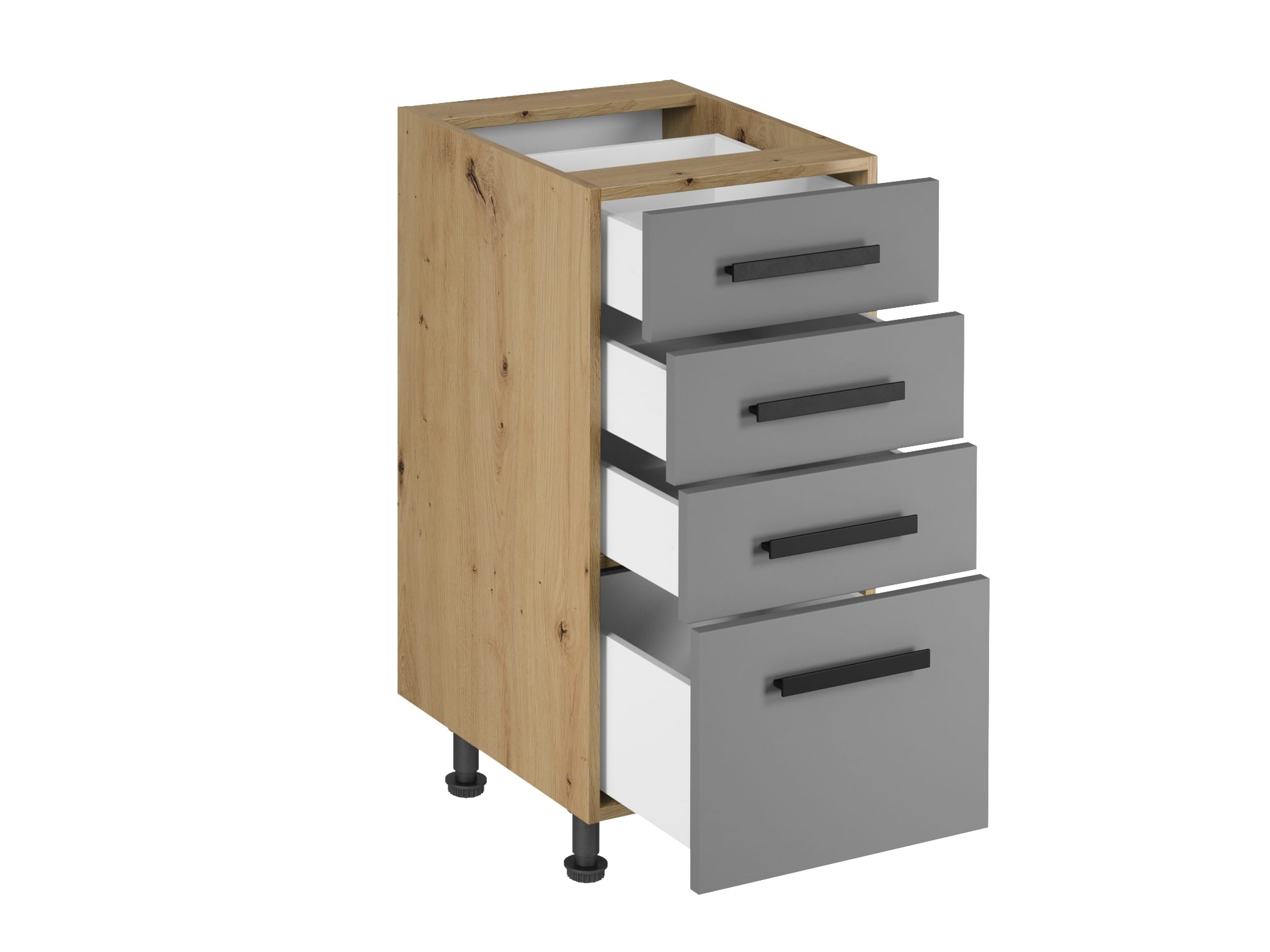 Deze vrijstaande keukenkast met lades belichaamt verfijning en functionaliteit, een essentie van luxe die naadloos in uw exclusieve interieur past. Met zijn elegante grijze afwerking voegt het een tijdloze charme toe aan elke keuken, terwijl de zorgvuldig ontworpen lades niet alleen praktische opslag bieden, maar ook een gevoel van orde en stijl uitstralen. De hoogwaardige materialen waaruit deze kast is vervaardigd, garanderen duurzaamheid en een luxueuze uitstraling. Dit meubelstuk, afkomstig van een merk met twintig jaar ervaring in het creëren van hoogwaardige meubels, is de perfecte keuze voor wie een leven vol elegantie en comfort nastreeft. Maak van uw keuken een oase van luxe met deze uitmuntende keukenkast.