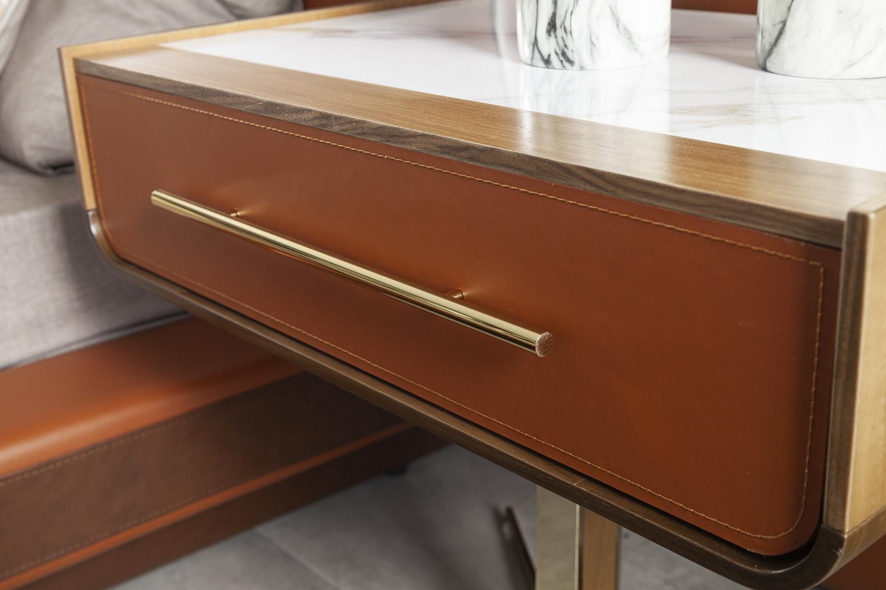 De gelaagde oranje bed set, vergezeld van twee mobiele nachtkastjes, belichaamt luxe en verfijning. Dit drie-delige ensemble, vervaardigd uit hoogwaardig bruin materiaal, transformeert elke slaapkamer in een unieke oase van elegantie. Het harmonieuze kleurenspel en de doordachte afwerking reflecteren een exclusieve levensstijl, perfect voor de veeleisende estheet. De nachtkastjes, ontworpen voor functionaliteit en stijl, bieden een verfijnde oplossing voor uw persoonlijke ruimte. Deze bed set is niet slechts een meubelstuk, maar een statement van uw smaak en waardering voor kwaliteit. Kies voor een premium design dat de essentie van luxe in uw huis vastlegt.