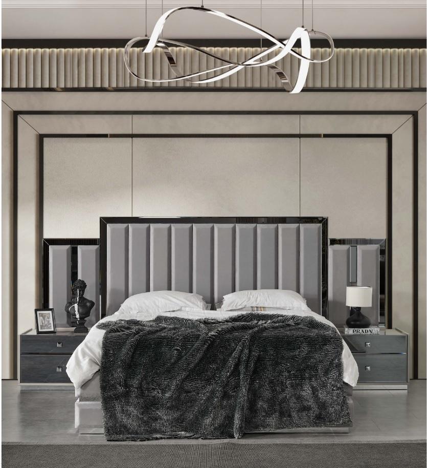 Garnituur Slaapkamer Tweepersoonsbed Bed Nachtkastjes 3-delig Grijs Kast