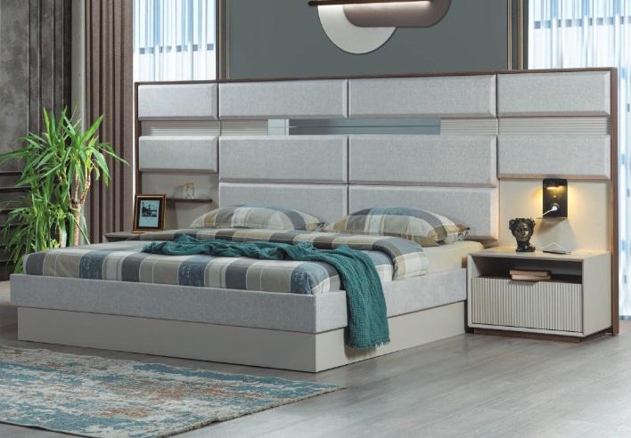 Witte slaapkamer meubels ontwerper tweepersoonsbed luxe 2x houten nachtkastjes