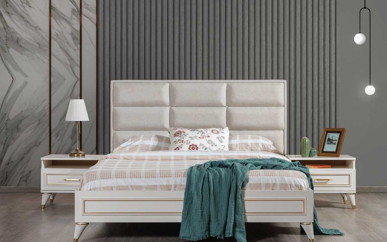 Slaapkamermeubels, Witte set, Gestoffeerd tweepersoonsbed