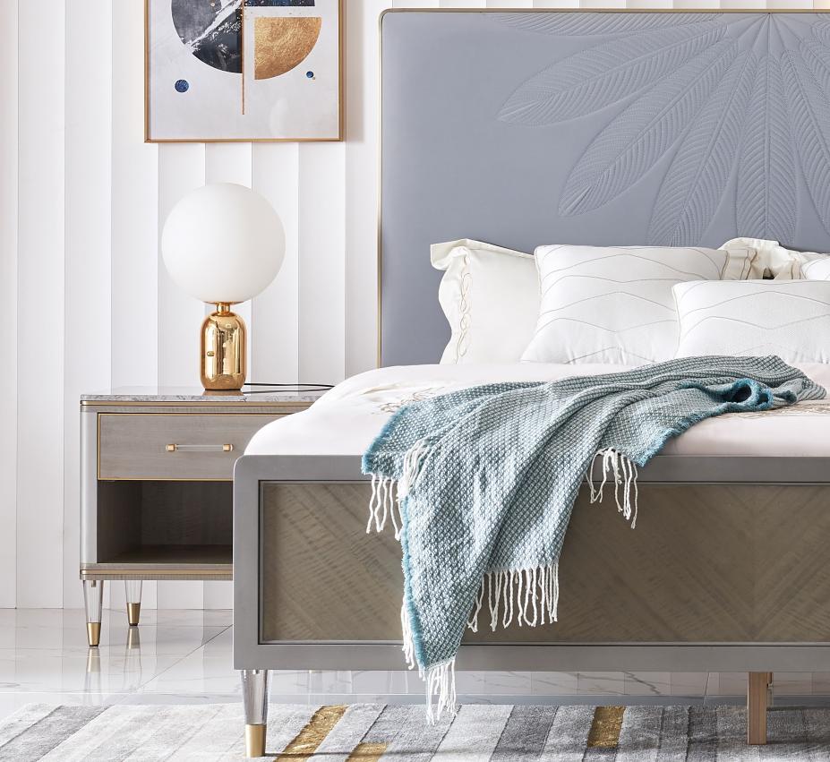 Leren Bed Tweepersoonsbed Grijs 180x200 Bedden Bekleding Luxe Dubbel