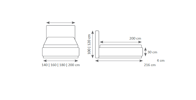 Matrasoppervlakte: ca. 160 x 200 cm