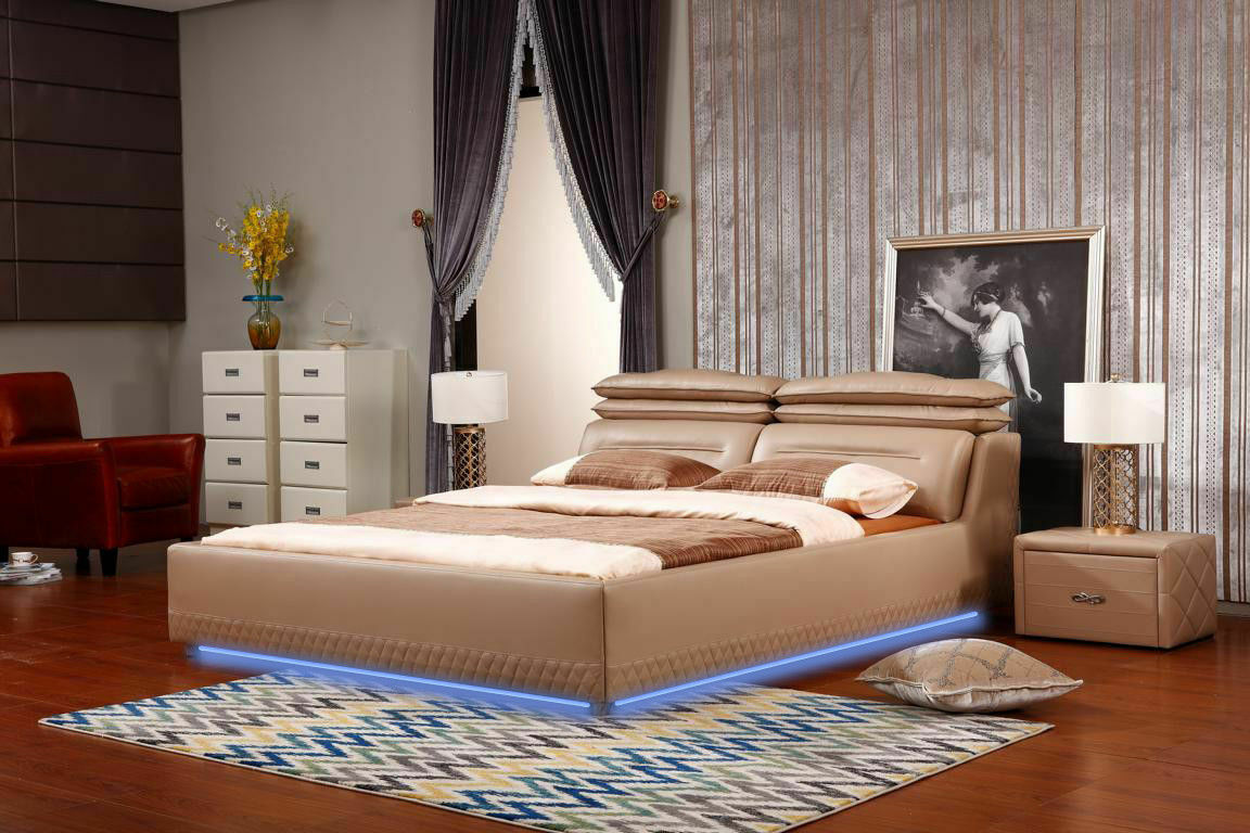 tweepersoonsbed, leren bed, bed, meubels
