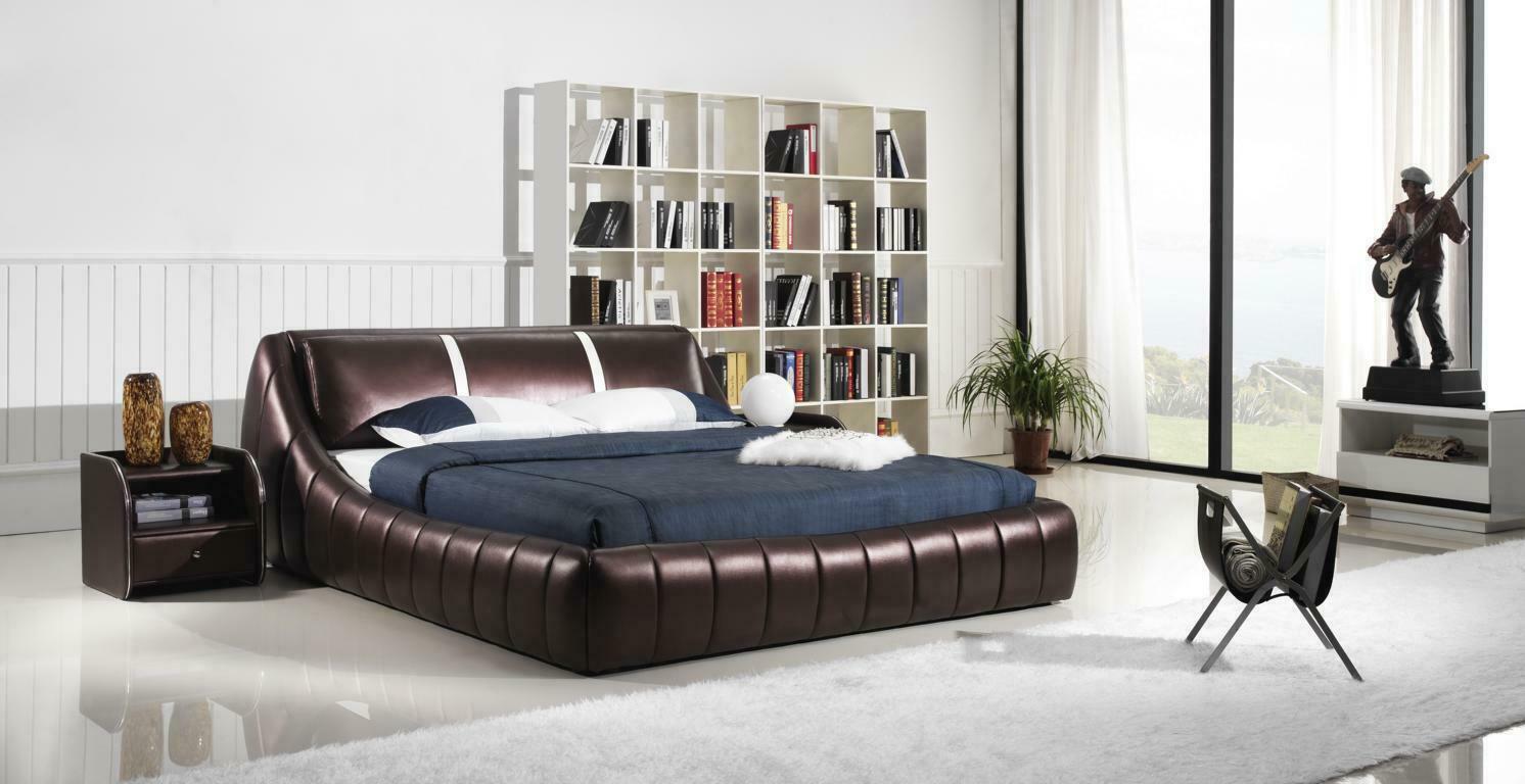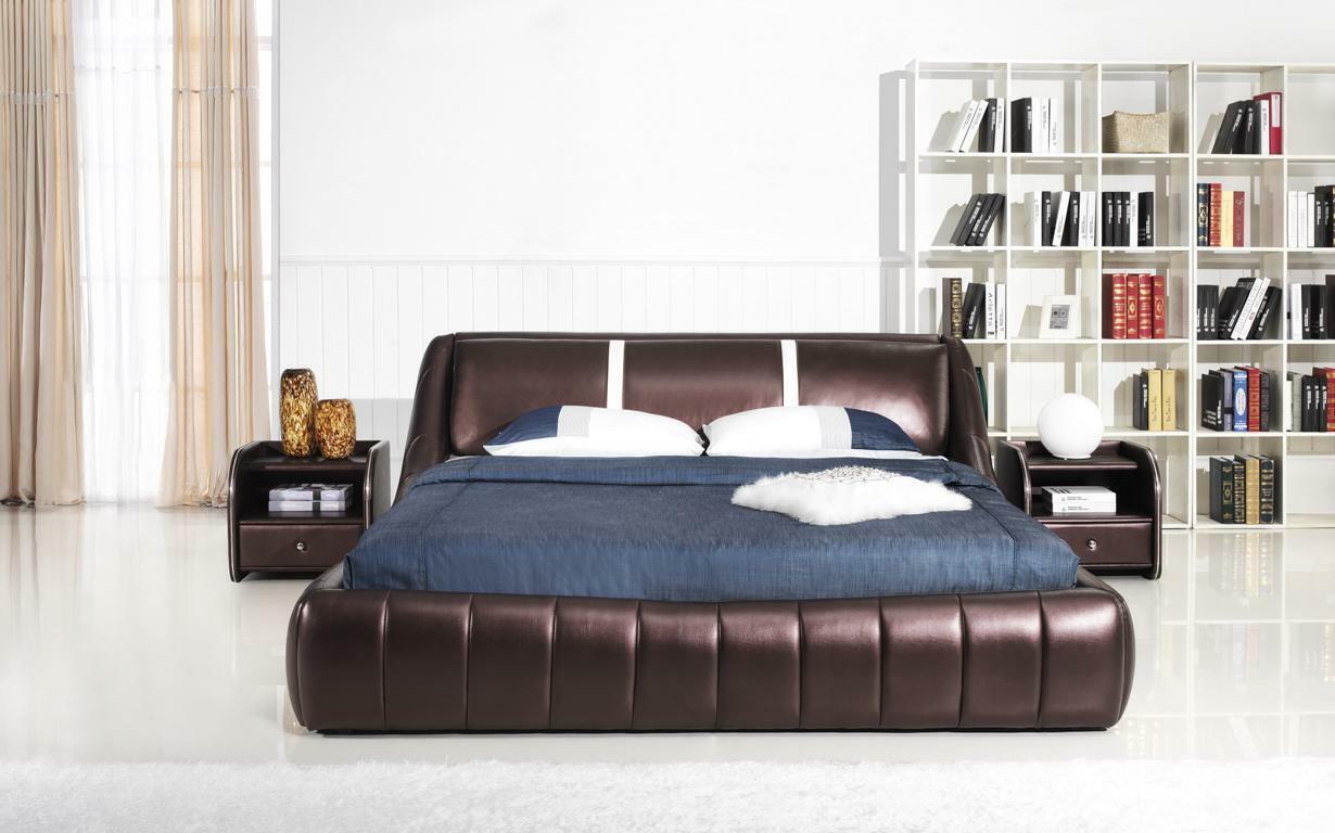 dubbel bed, leren bed, bed, meubels