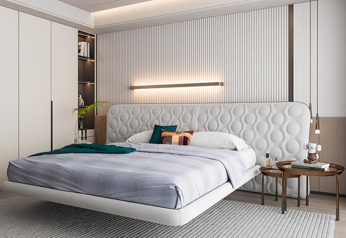 Moderne witte bed met minimalistisch en afgerond ontwerp