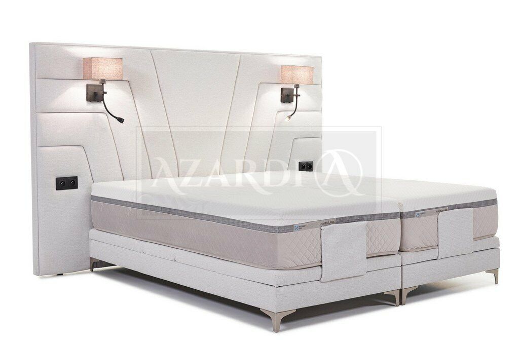 Bedden Dubbel bed Slaapkamer Leer Bekleding Textiel Hotel + Lampen is een luxe en stijlvol tweepersoonsbed dat een elegante uitstraling aan elke slaapkamer toevoegt. Met afmetingen van ca. 200 x 200 cm biedt dit bed een ruim slaapoppervlak voor optimaal comfort en ontspanning. Het matrasoppervlak van ca. 140/160/180/200 x 200 cm zorgt voor een goede nachtrust, terwijl het hoogwaardige premium kunstleer of stof uit Groep 1 bekleding een duurzame en chique uitstraling geeft. Optioneel kunnen bijpassende accessoires zoals een matras, lattenbodem en heffingssysteem + bedlade worden toegevoegd voor extra gemak.