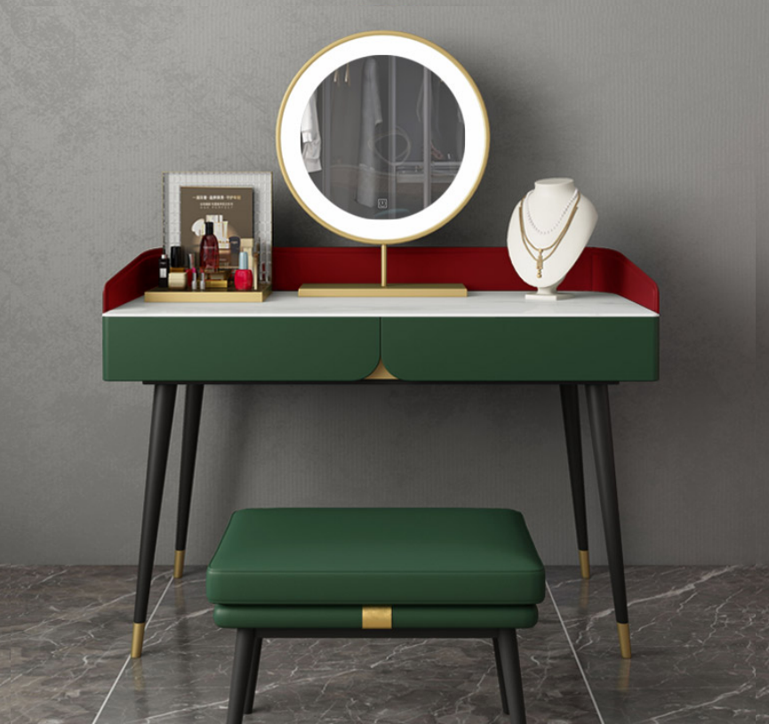 De Kaptafel Spiegel Console Slaapkamer Houten Tafel is een luxueuze toevoeging aan elke slaapkamer. Met afmetingen van ca. 98 x 40 x 75 cm biedt deze tafel een elegante en functionele ruimte om je make-up op te bergen en aan te brengen. Het houten en stevige stenen materiaal zorgt voor duurzaamheid en een stijlvolle uitstraling. De prachtige kleur zoals afgebeeld past goed bij verschillende interieurstijlen, waardoor deze kaptafel een tijdloze investering is.
