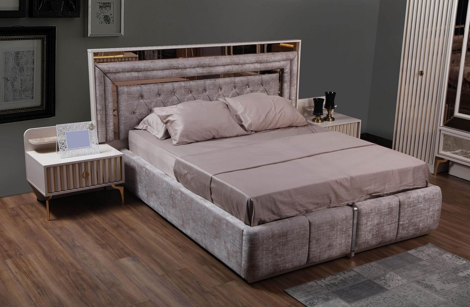 Modern compleet slaapkamer set Designer bed 2x nachtkastjes 5-delig