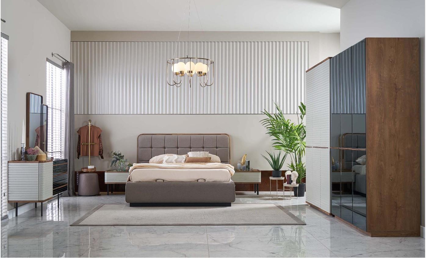 In deze complete slaapkamerset vind je alles wat je nodig hebt om je slaapkamer in een handomdraai te transformeren tot een oase van rust en comfort. Het tweepersoonsbed biedt voldoende ruimte voor een goede nachtrust, terwijl de bijgevoegde nachtkastjes perfect zijn voor het opbergen van persoonlijke spullen binnen handbereik. De kledingkasten bieden ruime opbergmogelijkheden voor kleding, beddengoed en meer, waardoor je slaapkamer altijd netjes en georganiseerd blijft. De combinatie van bruin hout en stof zorgt voor een warme en uitnodigende uitstraling die past bij diverse interieurstijlen. Met deze set haal je niet alleen kwaliteit en functionaliteit in huis, maar ook een prachtig design dat je slaapkamer naar een hoger niveau tilt.