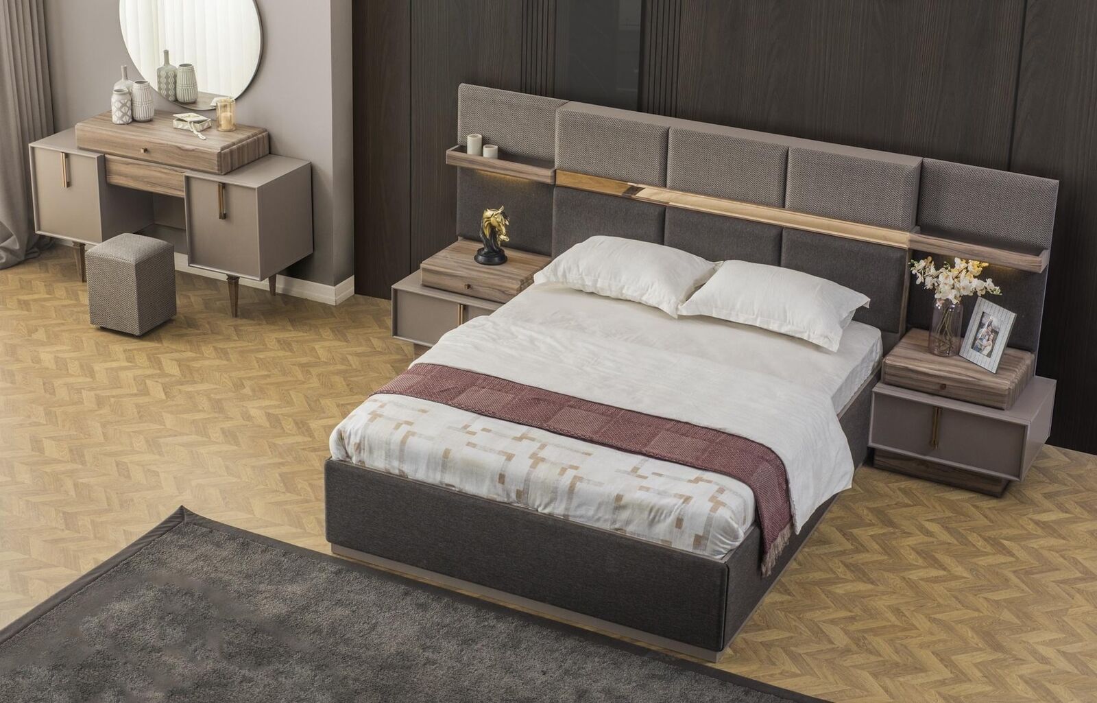 Slaapkamer Compleet tweepersoonsbed Bed Nachtkastjes Console 6-delig Grijs