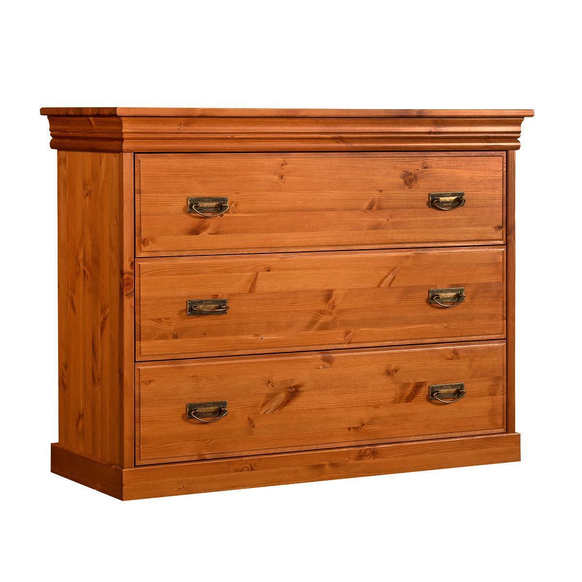 Dit prachtige Ladekast met 3 laden dressoir is een perfecte aanvulling voor elk huis. Met een afmeting van ca. 107 x 42 x 83 cm biedt deze kast voldoende opbergruimte voor al uw spullen. Het bruine houten design geeft een warme en stijlvolle uitstraling aan elke kamer. De kast is gemaakt van echt hout, wat zorgt voor duurzaamheid en een lange levensduur. De drie ruime laden zijn ideaal voor het opbergen van kleding, accessoires of documenten, waardoor uw ruimte georganiseerd blijft en u gemakkelijk toegang heeft tot uw spullen.