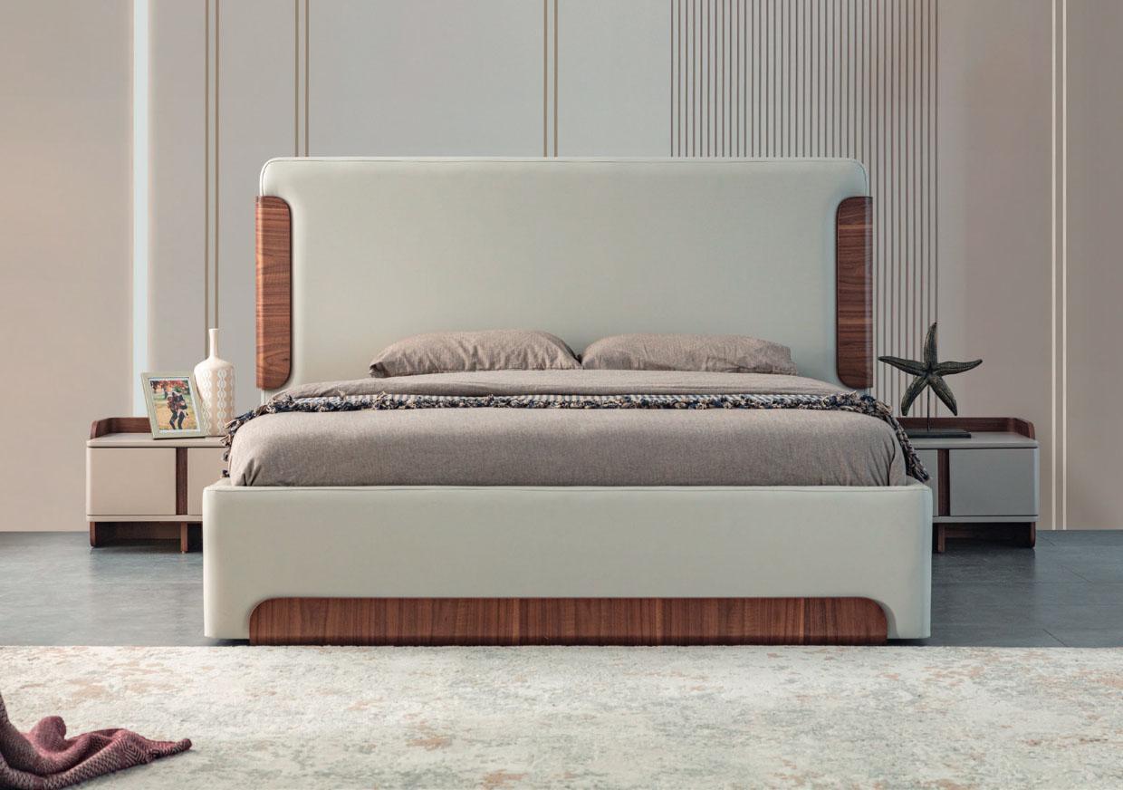 Stijlvolle Beige Slaapkamermeubels Gevoerd Tweepersoonsbed Kaptafel 5-delig