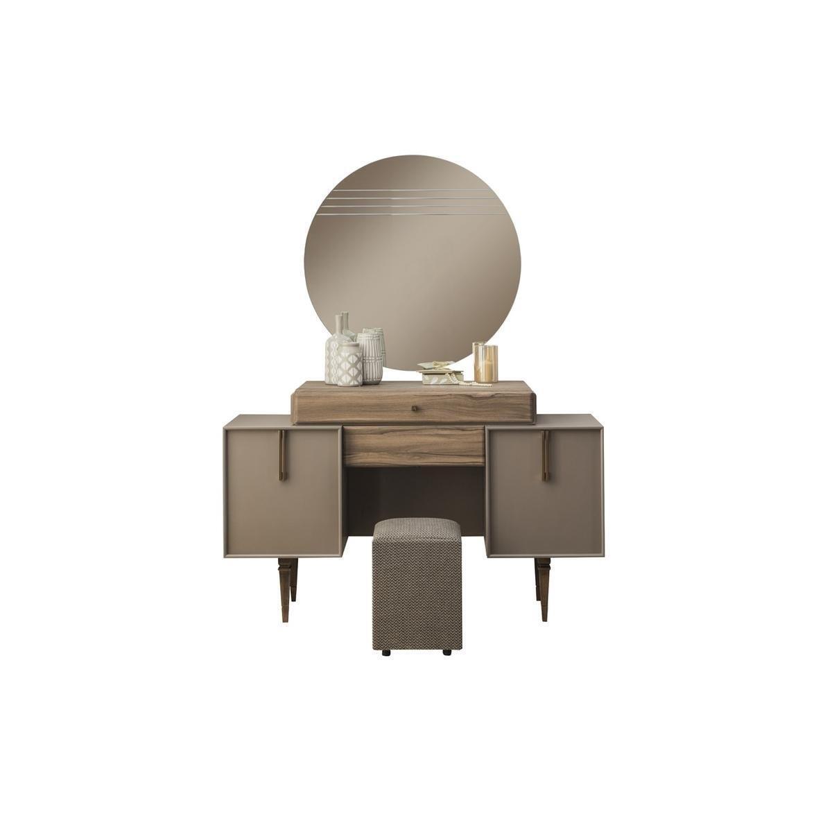 Make-up tafel met spiegel, tafel met poef, slaapkamermeubels.