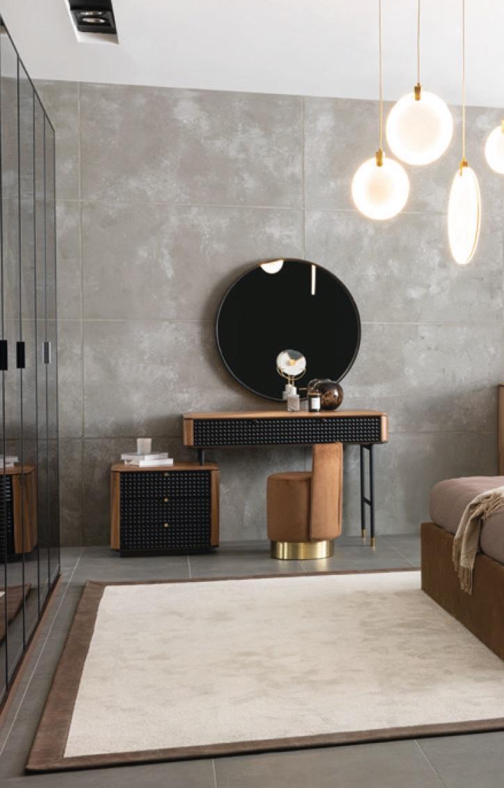 Bed naar slaapkamer, moderne slaapkamer, kaptafel