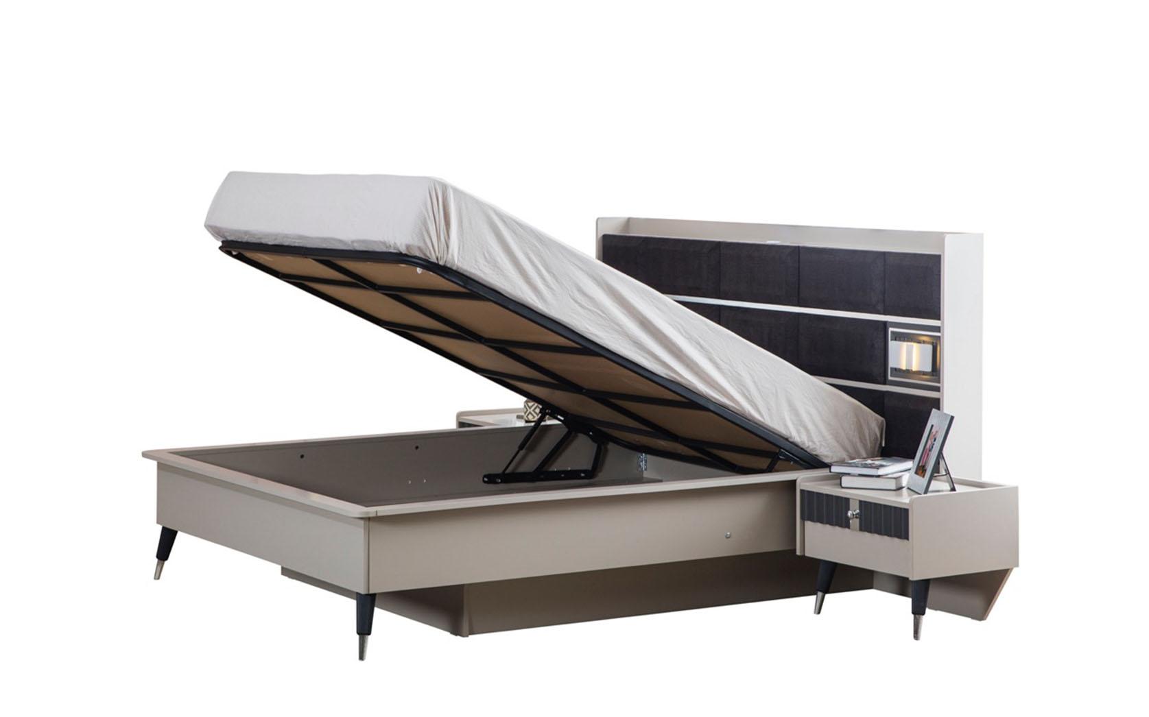 Grijze slaapkamermeubels Ontwerpbed 2 nachtkastjes Houten kast 4-delig