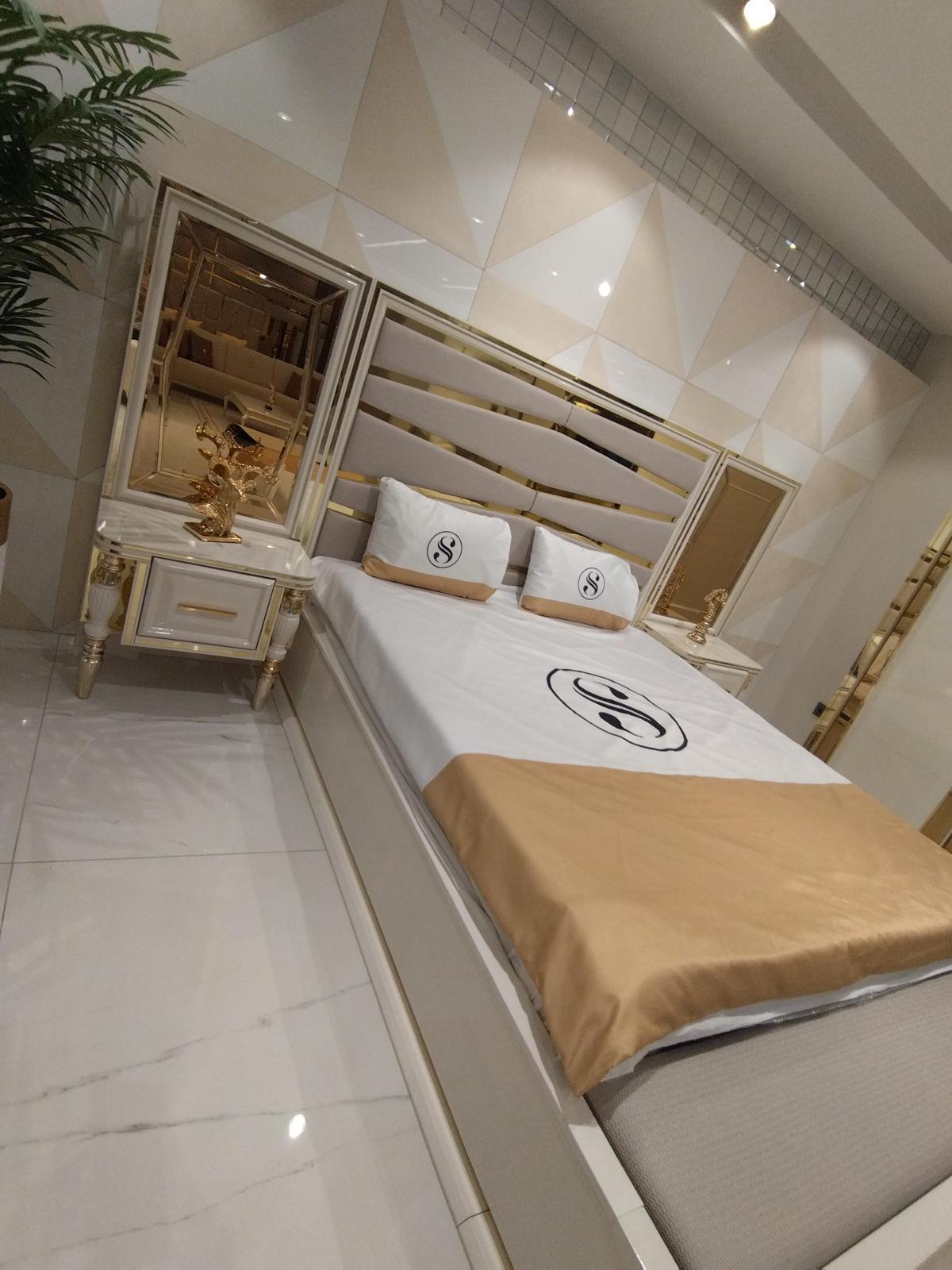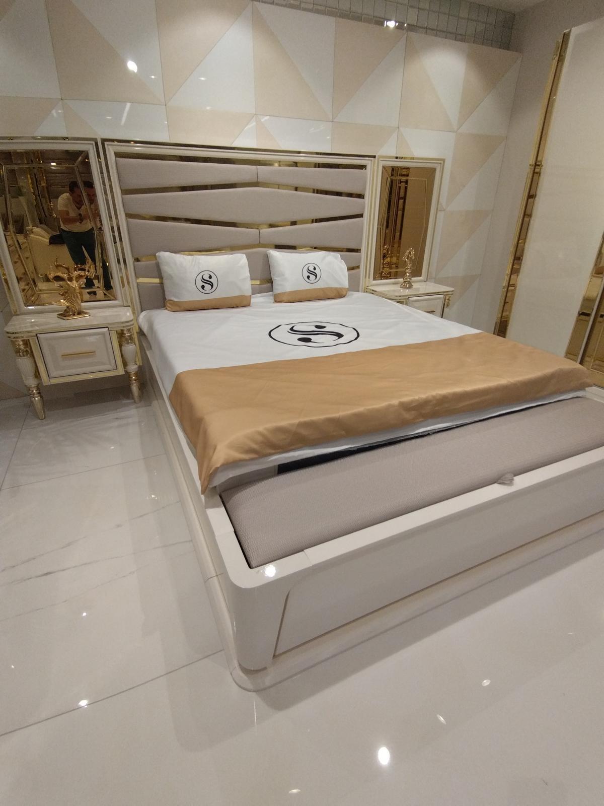 Modern slaapkamer set Bed 2x Nachtkastjes Commode met Spiegel Kast Nieuw