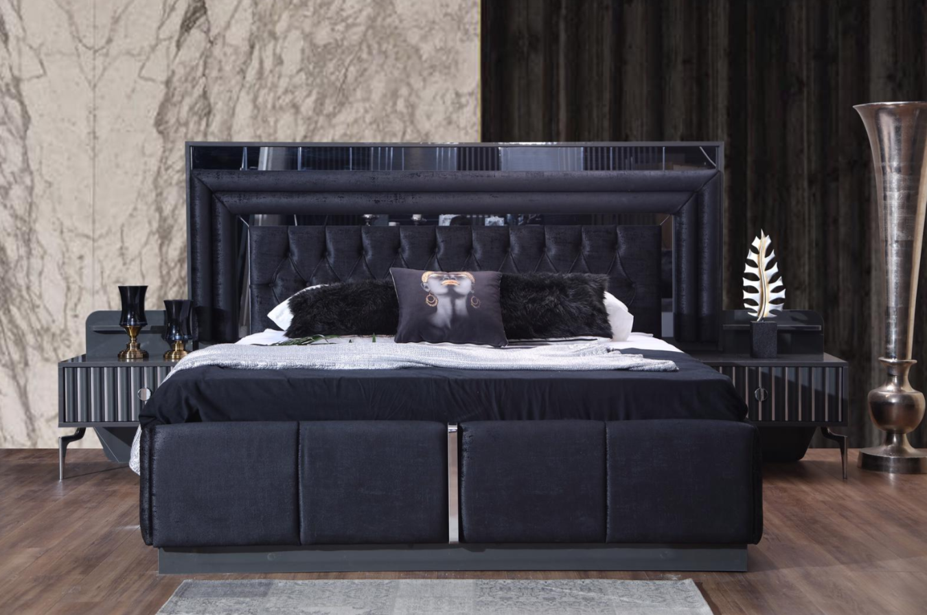 Compleet Zwarte Slaapkamerset Luxe Tweepersoonsbed Nachtkastjes 4-delig
