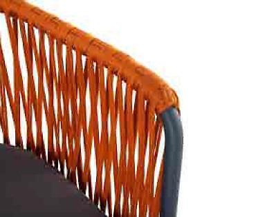 Oranje tuinmeubels, tweezitsbank, fauteuil, salontafelset.