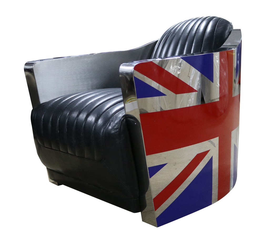 Echtlederen Vintage leren fauteuil Decoratieve designstoel Rocket Union Jack Vintage