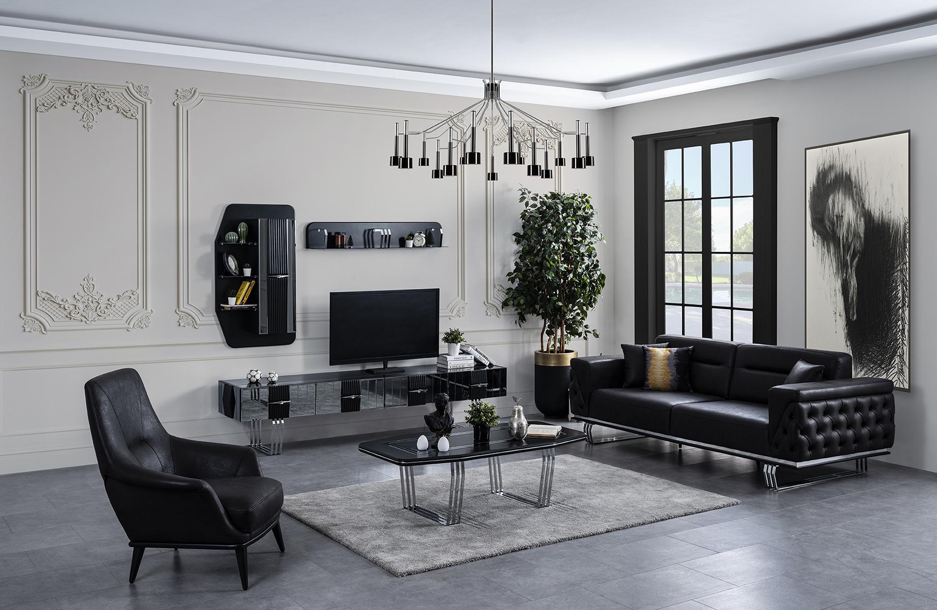 Luxe fauteuil met hoge rugleuning, cocktailstoel, kunstleer polyester zwart
