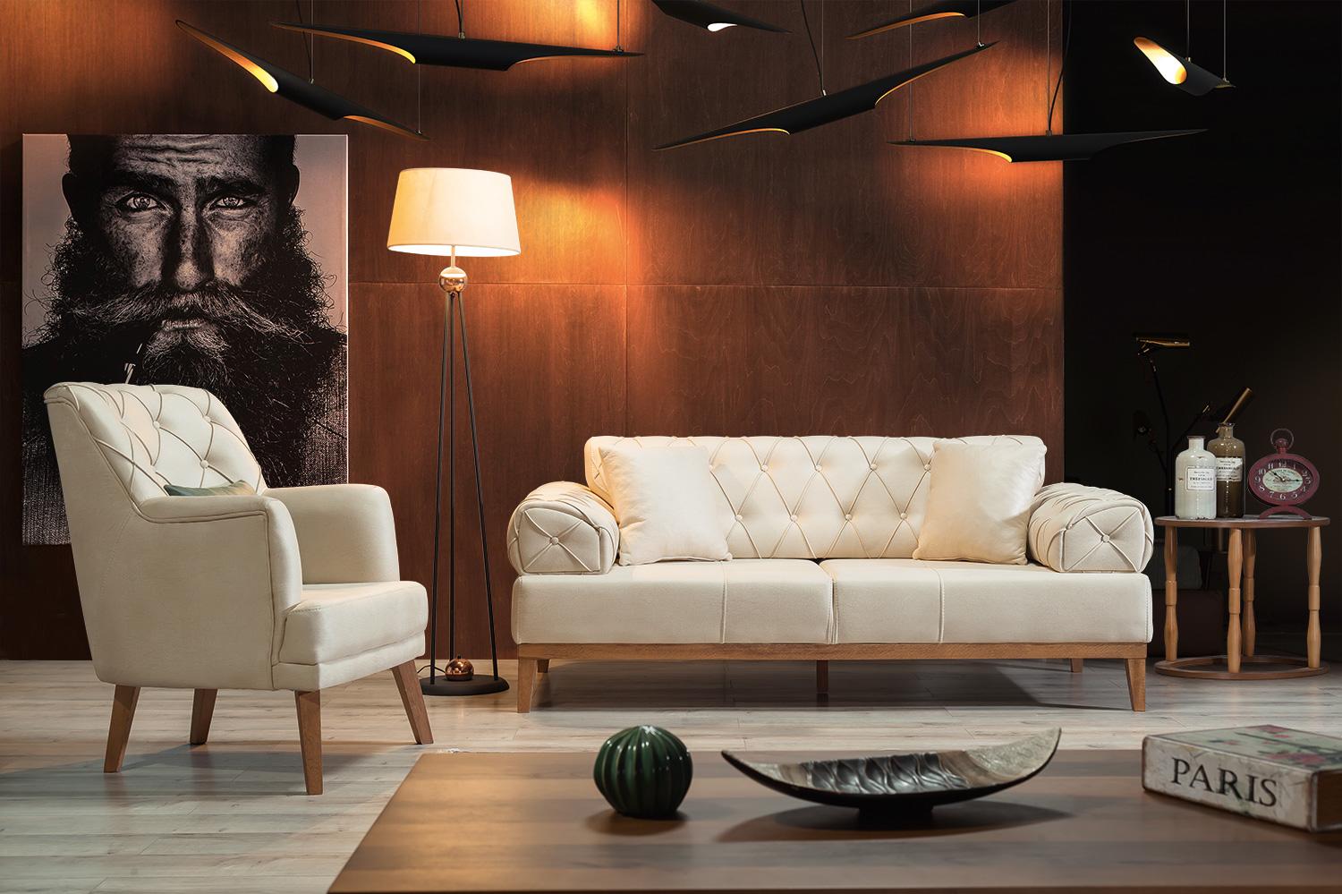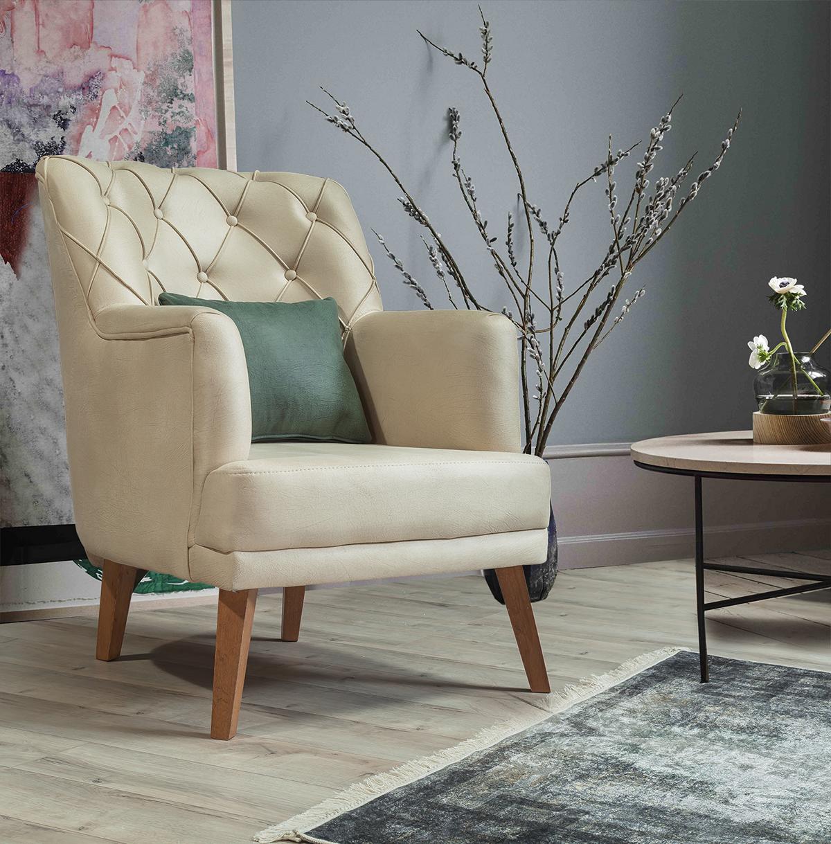 Woonkamer fauteuil meubels modern stof lounge textiel kunstleer beige Woonkamer fauteuil meubels modern stof lounge textiel kunstleer beige