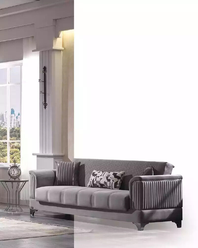 Grijze gestoffeerde bankstel van stof 3+3+1 fauteuil design 3-delig nieuw