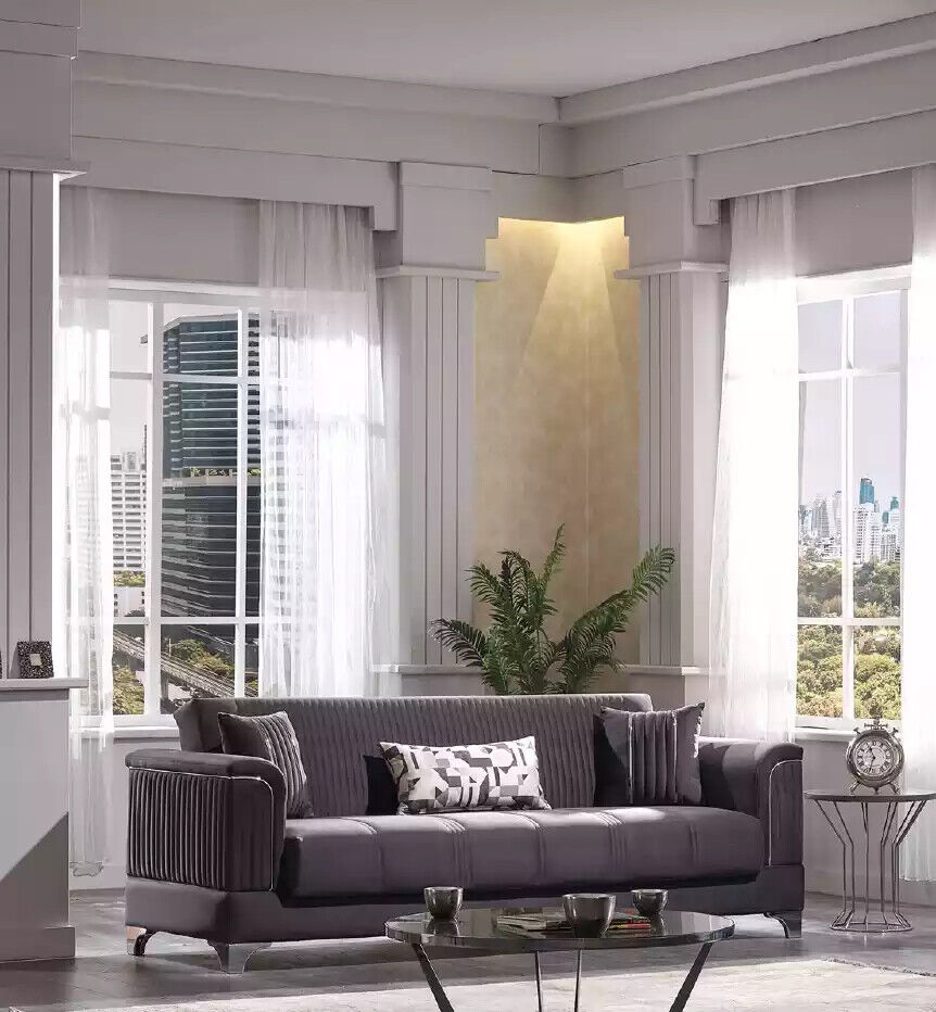 Grijze gestoffeerde bankstel van stof 3+3+1 fauteuil design 3-delig nieuw is een prachtige toevoeging aan elk interieur. Dit bankstel bestaat uit twee 3-zits banken en een fauteuil die zijn ontworpen voor stijl en comfort. De grijze stoffering past perfect bij verschillende kleurenschema's en voegt een vleugje elegantie toe aan uw woonruimte. Met een stevig houten frame en comfortabele zitkussens is dit bankstel ideaal om te ontspannen en te socializen met vrienden en familie.
