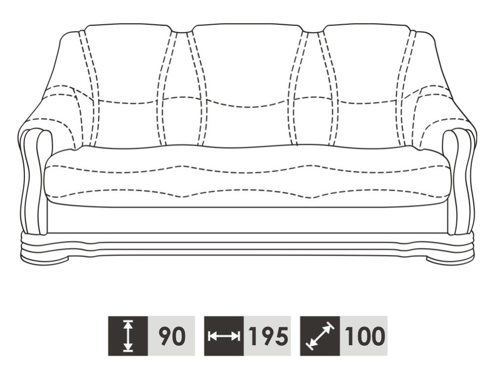 Klassieke driezitsbank banken bekleden bankbank 3-zitsleren banken is een stijlvolle toevoeging aan elk interieur. Deze prachtige bank biedt niet alleen comfort, maar straalt ook klasse uit. Met afmetingen van ongeveer 195 cm lengte, 90 cm hoogte en 100 cm diepte, is deze bank ideaal voor gezellige avonden met vrienden en familie. De zithoogte van ongeveer 45 cm en zitdiepte van ca. 60 cm zorgen voor een ontspannen zitervaring. De bank is vervaardigd van hoogwaardig Italiaans runderleer, waardoor duurzaamheid en kwaliteit gegarandeerd zijn. Het binnenframe van echt hout en het verende systeem bieden extra ondersteuning en comfort.