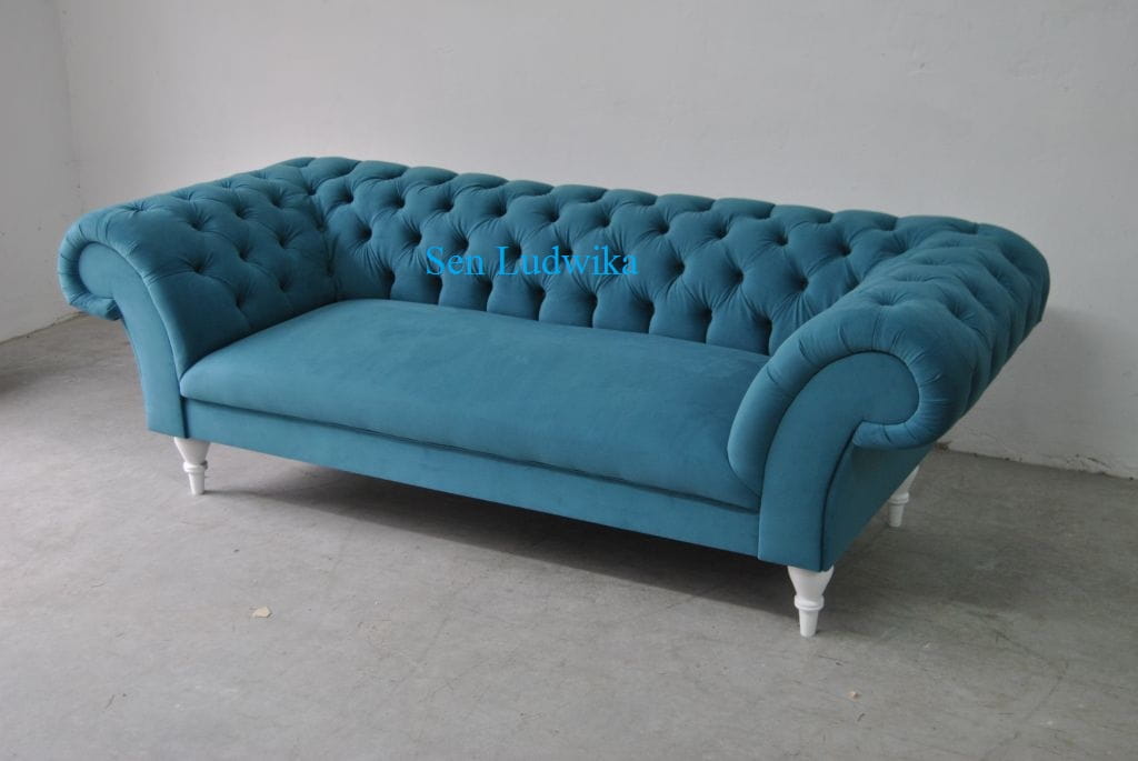 Textiel 3-zits Blauw Stof Ontwerp Bank Bekleding Bankstellen Modern Bank Chesterfield is een prachtig ontworpen en comfortabel 3-zits bankstel dat een moderne uitstraling toevoegt aan elke woonkamer. Dit bankstel is voorzien van kristalstenen in plaats van knopen, wat een luxe en stijlvolle touch geeft aan het ontwerp. Het binnenframe van echt hout zorgt voor duurzaamheid en stabiliteit, terwijl het Italiaanse rundleer van premium kwaliteit een luxueuze uitstraling biedt.