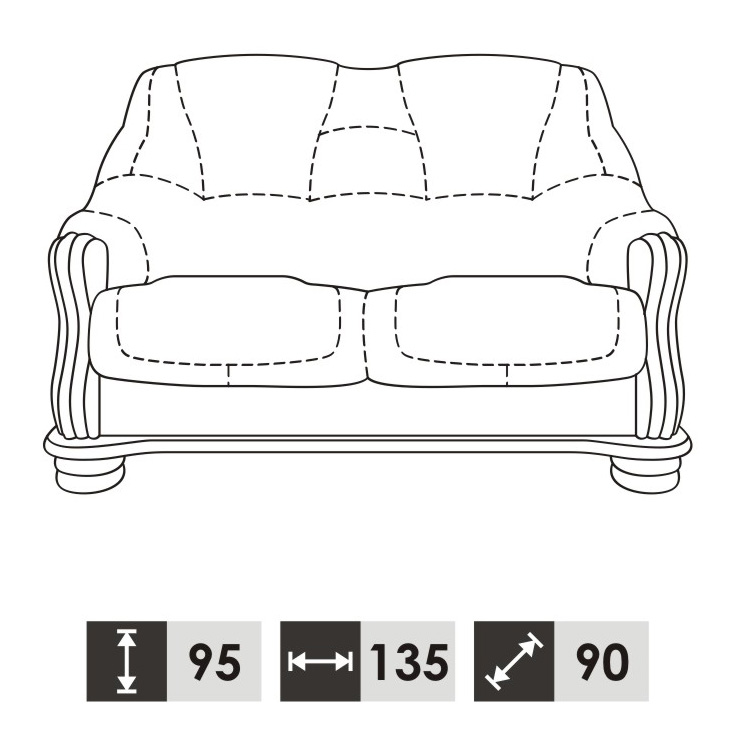 Beschrijving van de Tweezitsbank 2-zits Klassieke banken Banken Bekleding Nieuw (zonder 3+1-zits)